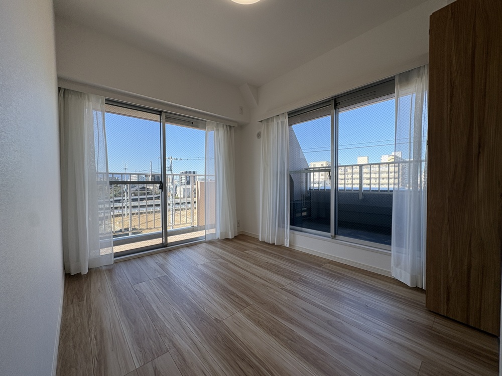 2025年4月フルリノベーション済み 全室に採光面のある角住戸 間仕切りを開けて2LDKとして使用するなどお客様の用途に合わせて使い分けができる間取り 明るい色味の建具で、清潔感のある室内に仕上がっています。 |