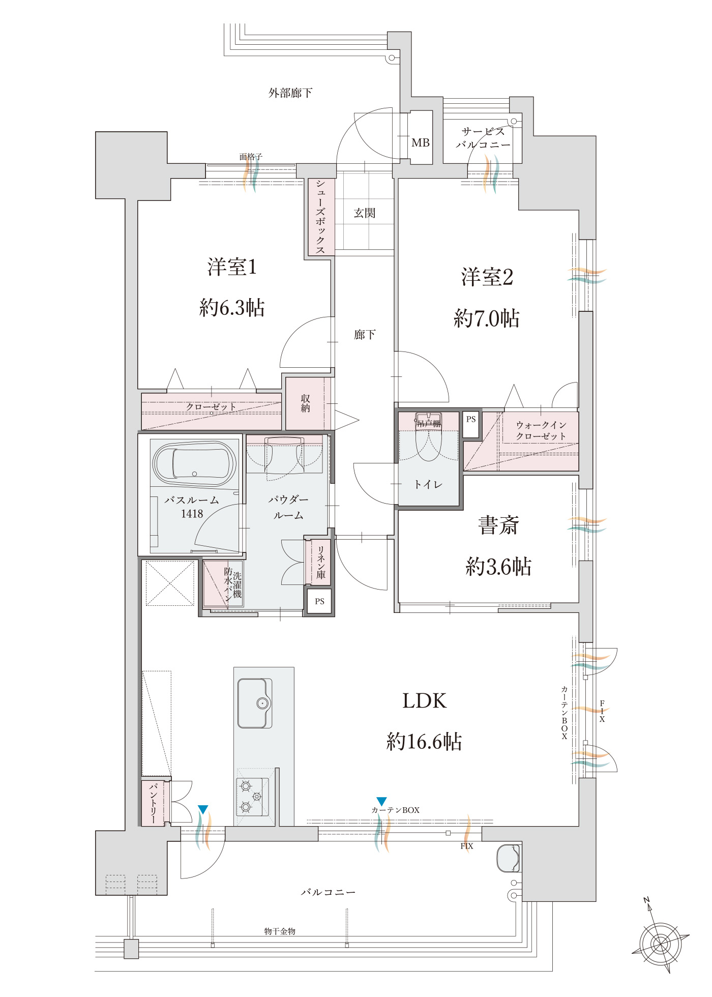 - WIC:ウォークインクローゼット SC:シューズクローク DEN:書斎